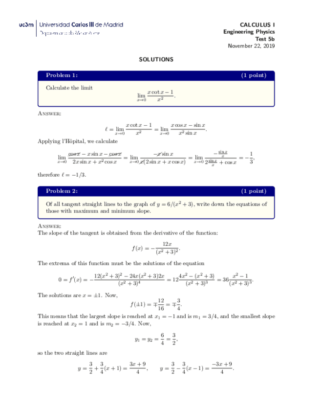 He publicado nuevos examenes de 1º Cálculo I: Finales CON SOLUCIONES