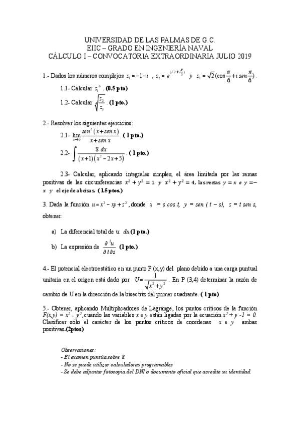 He publicado un examen de Cálculo 1 1º año de carrera