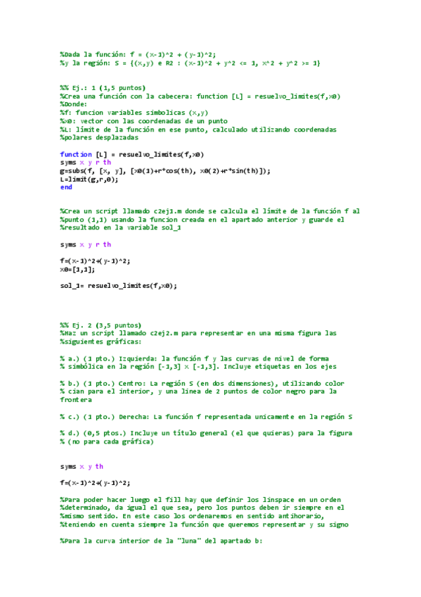 Están tanto el pdf con la resolución + enunciados para que se pueda copiar y pegar, como los propios archivos de Matlab. Si se descarga la función directamente de wuolah puede que le cambie el nombre y no funcione, así que recomiendo pegarla del pdf