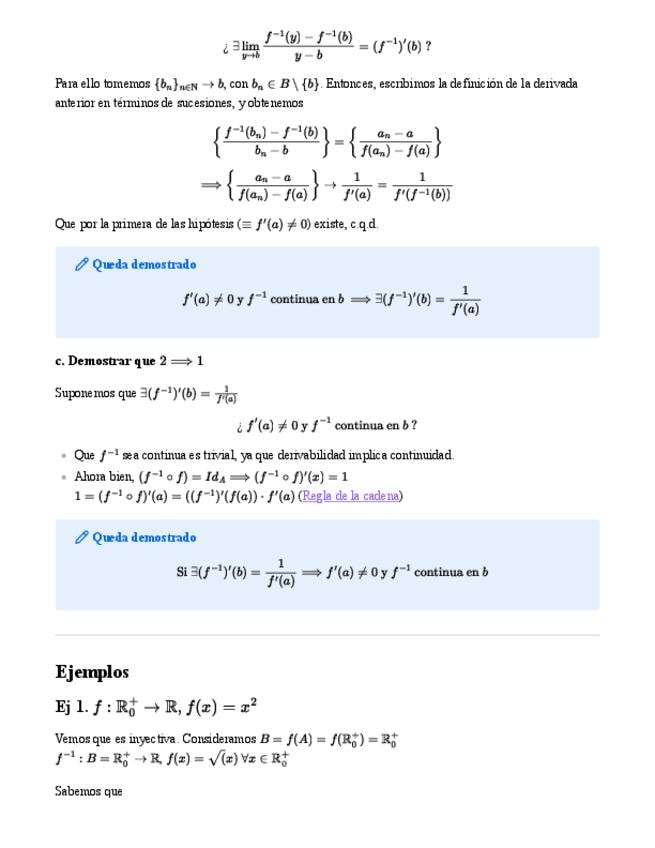 Teorema de la derivada de la función inversa y dos ejemplos.