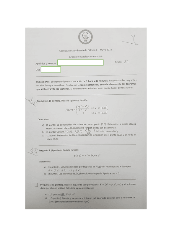 Exámenes cálculo II 2023