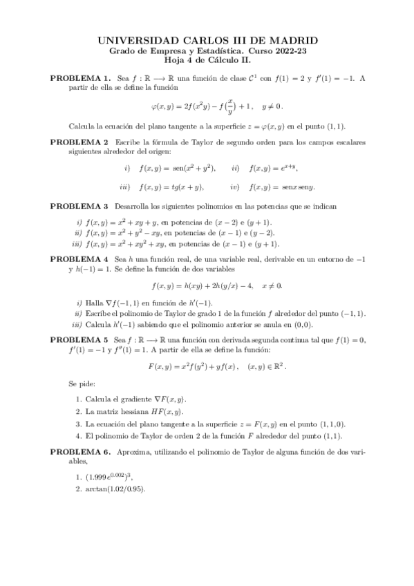 He publicado nuevos ejercicios de 1º Cálculo II: Hoja4-CIICurso202223..pdf