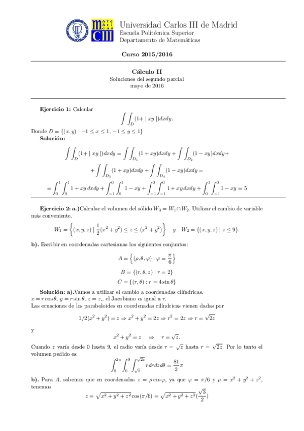 EXAMENES CALCULO II FINALES RESUELTOS