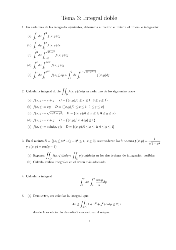 He publicado nuevos ejercicios de 1º Cálculo II: HOJA-3-INTEGRALES-DOBLES.pdf