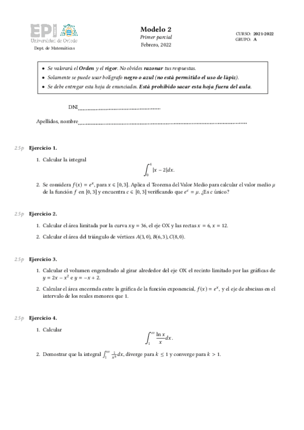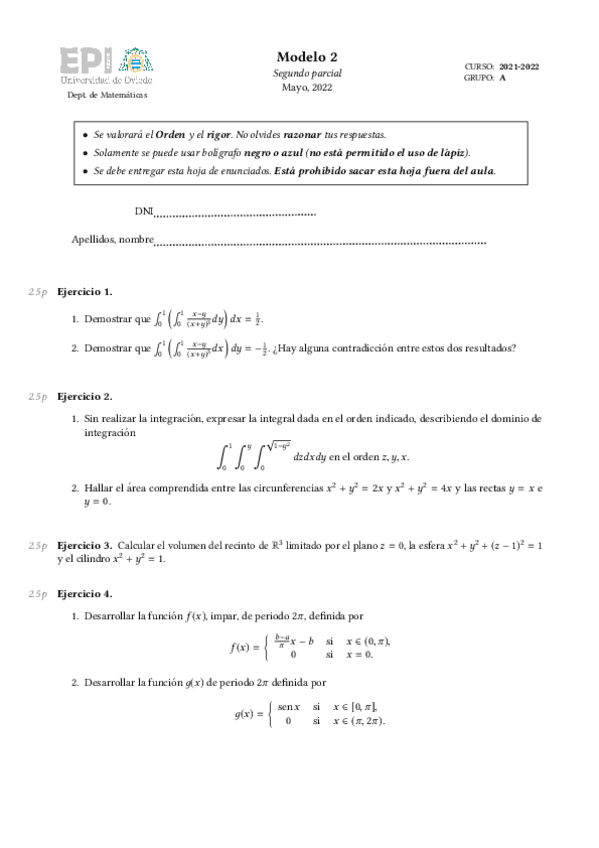 He publicado nuevos ejercicios de 1º Cálculo II: Ejercicios examen Tema 2