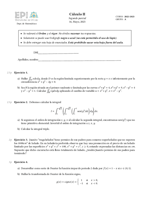 He publicado nuevos ejercicios de 1º Cálculo II: Ejercicios examen Tema 1