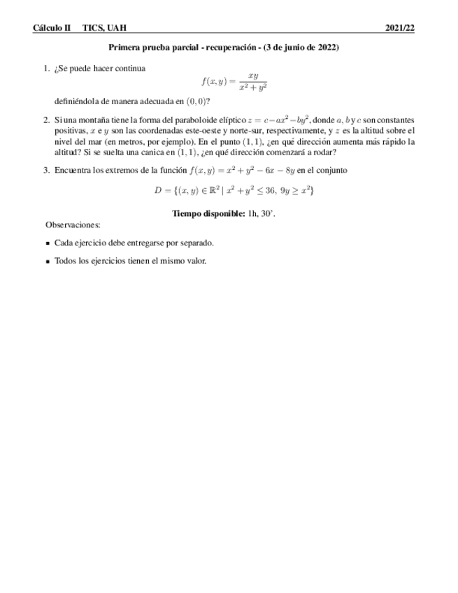 He publicado nuevos examenes de 1º Cálculo II: Modelos PEI1
