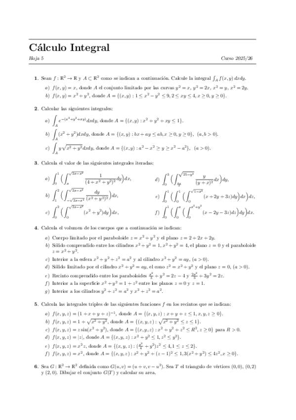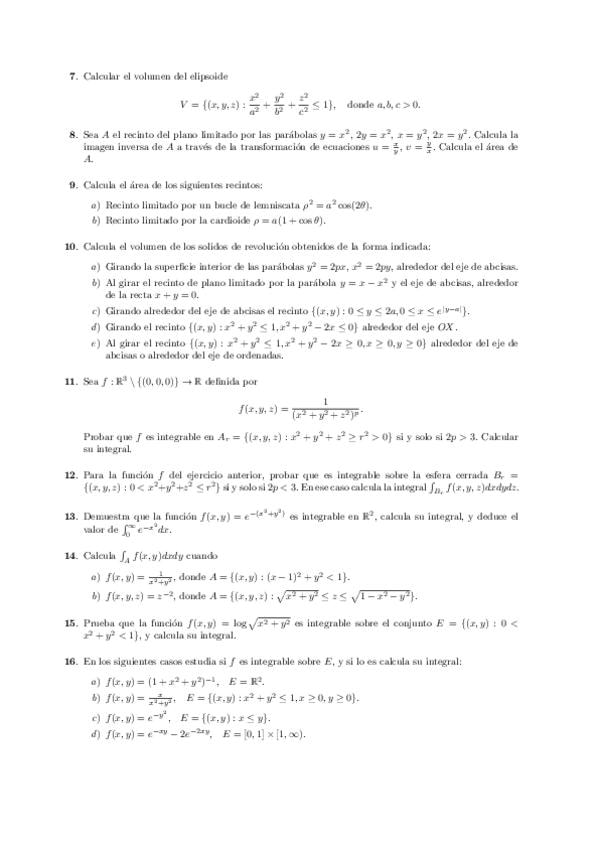 He publicado nuevos ejercicios de 2º Cálculo Integral: Hoja-2-Ejercicios.pdf