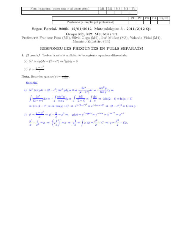 He publicado nuevos examenes de 1º Cálculo Numérico - Ecuaciones Diferenciales: Exámenes Parciales 2
