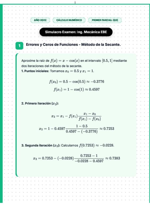 Simulacro Examen - Cálculo Numérico y Ecuaciones Diferenciales
