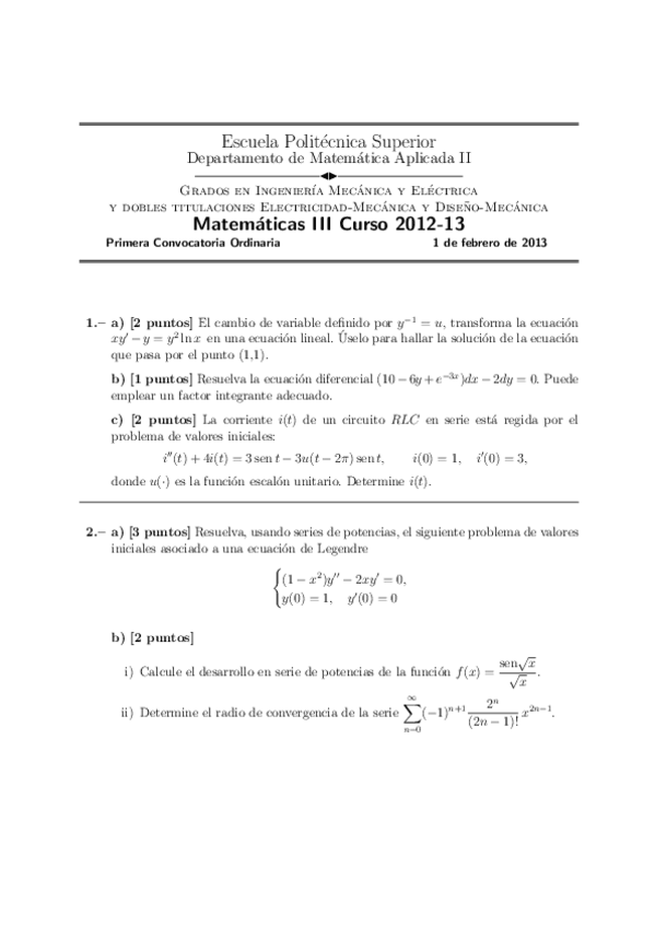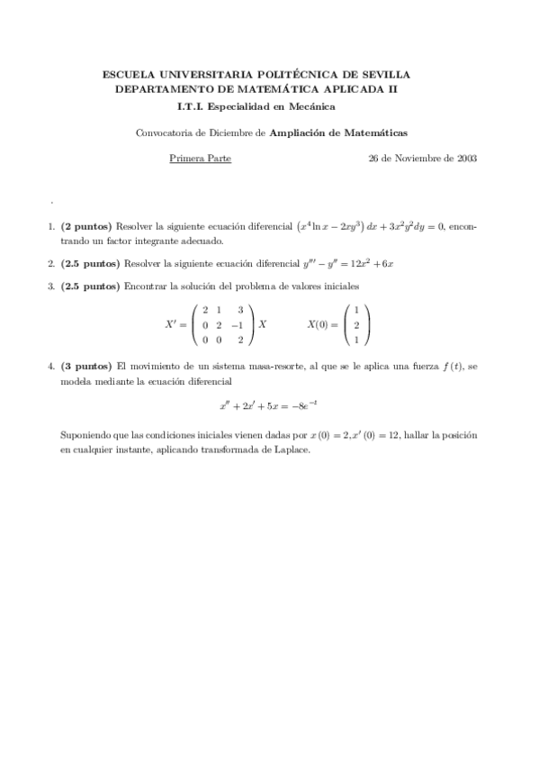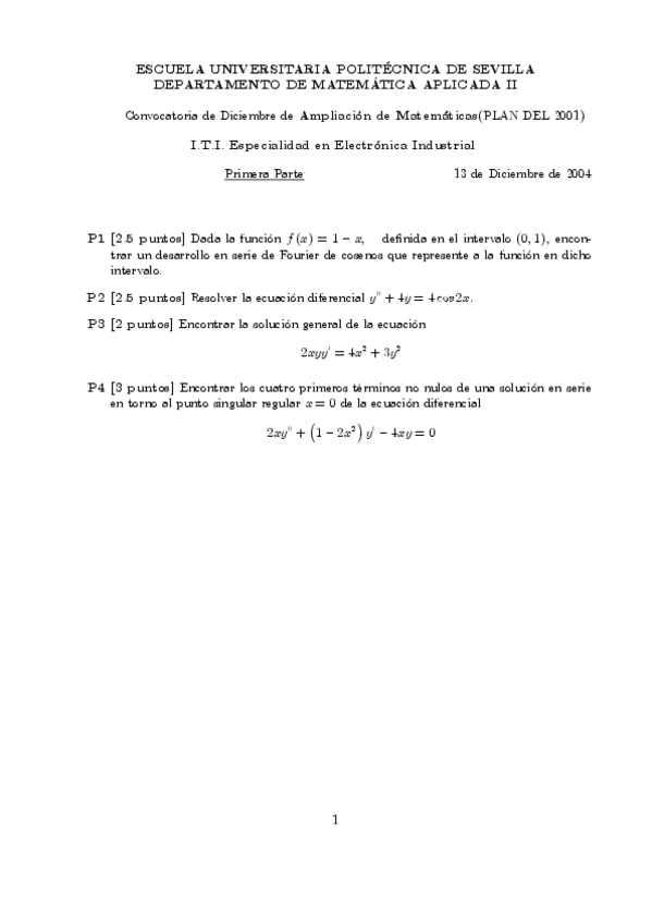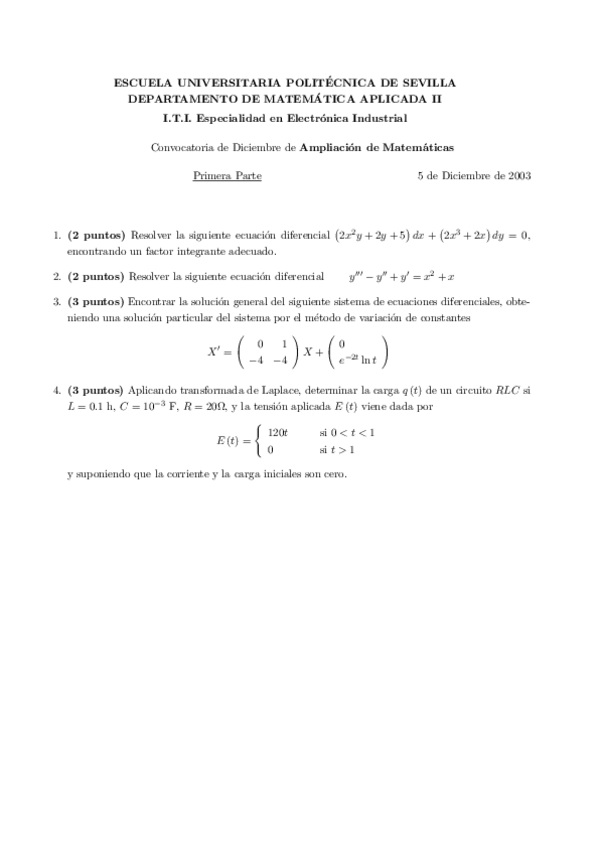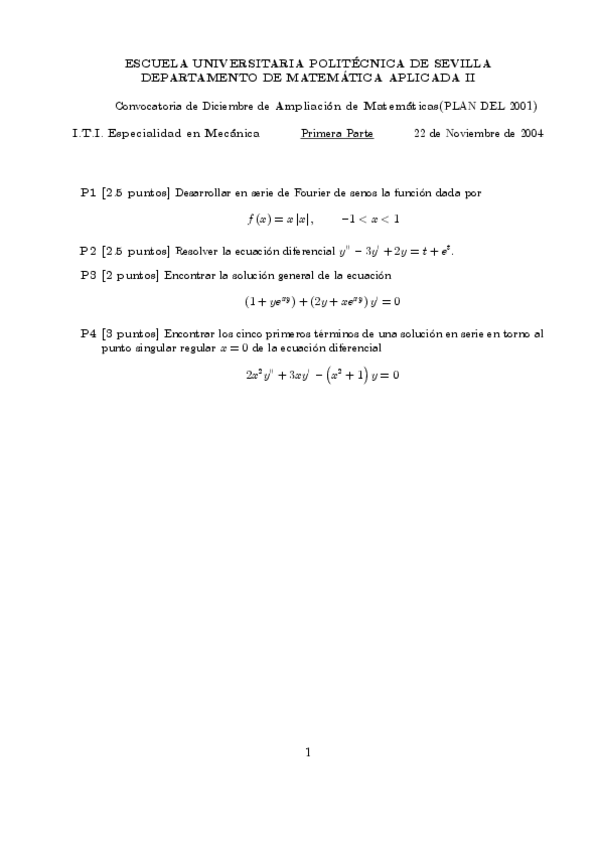 He publicado nuevos examenes de 1º Cálculo Numérico - Ecuaciones Diferenciales: Exàmens CNED