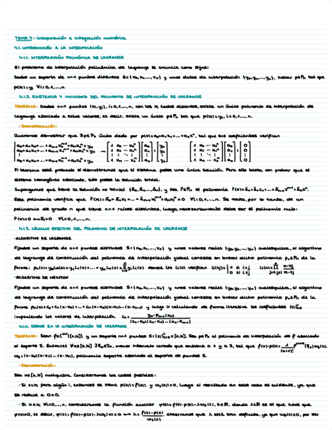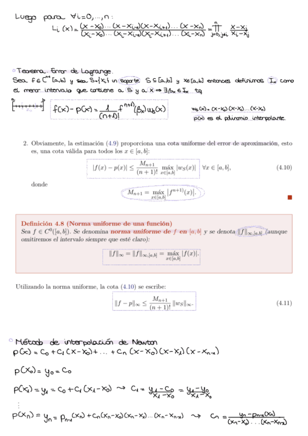 Resumen Tema 4 de Cálculo Numérico
