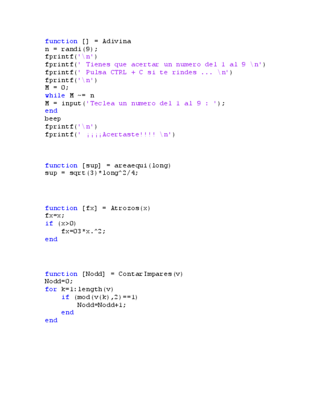 Matlab (Ejercicios y examen resueltos)