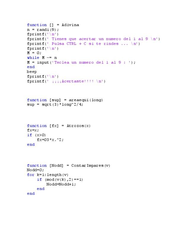 Matlab, TODOS los ejercicios RESUELTOS