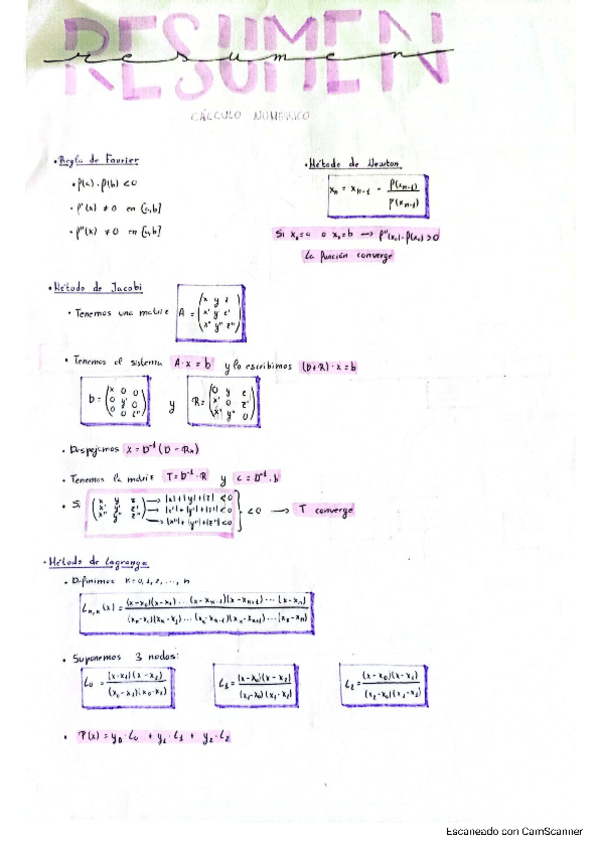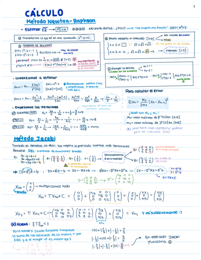 Apuntes resumen de los métodos Newton-Raphson y Jacobi de los primeros días