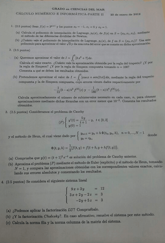 He publicado nuevos examenes de 2º Cálculo Numérico: modelo examenes