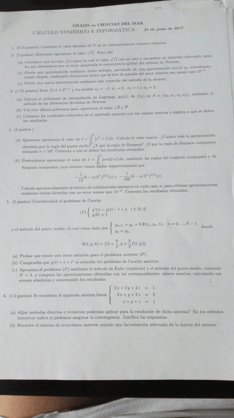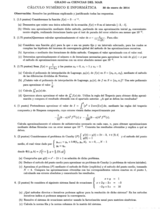 He publicado nuevos examenes de 2º Cálculo Numérico: Cálculo numérico