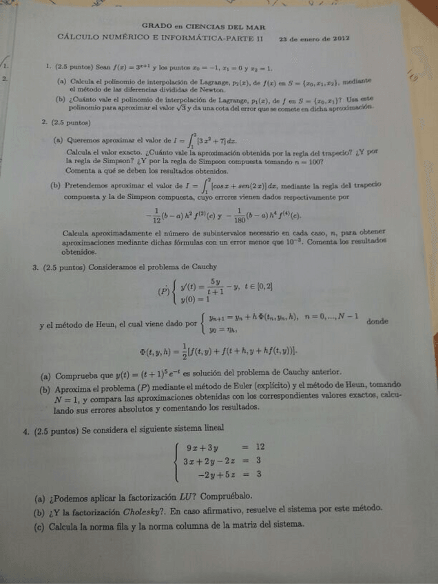 He publicado nuevos examenes de 2º Cálculo Numérico: Examenresueltocalculoenero2012.pdf