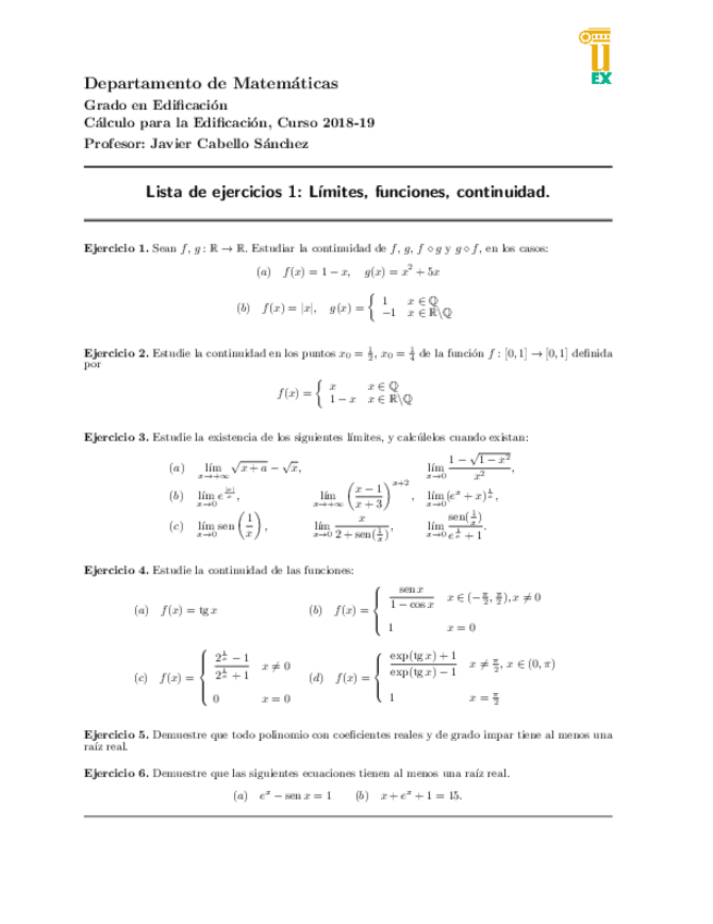 He publicado nuevos examenes de 1º CÁLCULO PARA LA EDIFICACIÓN: Examen-Parcial-de-Calculo.-Diciembre.pdf
