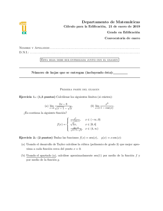 He publicado nuevos examenes de 1º CÁLCULO PARA LA EDIFICACIÓN: Ejemplo-parcial-calculo.pdf