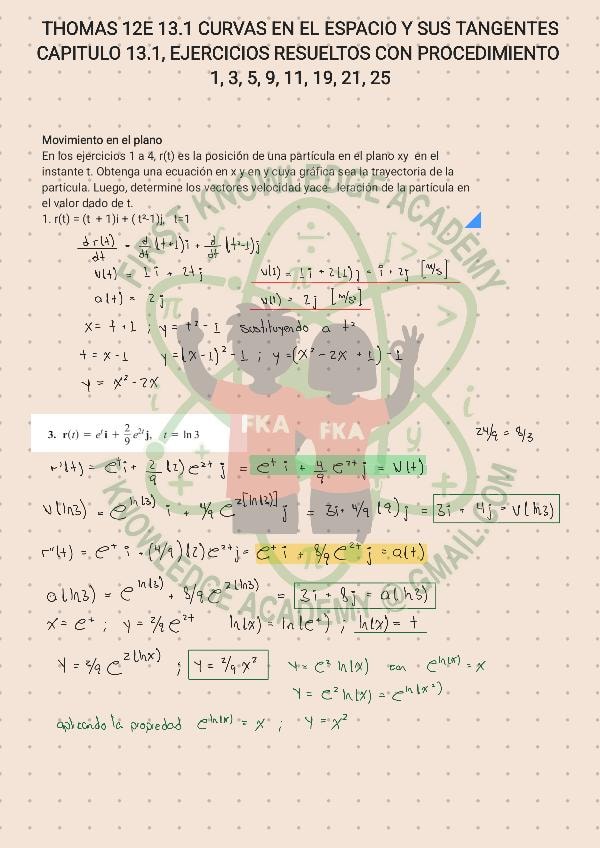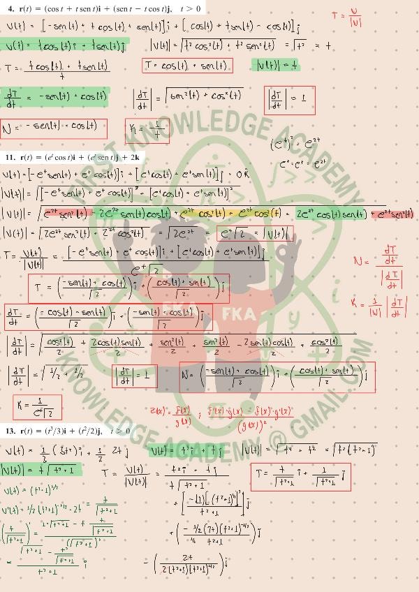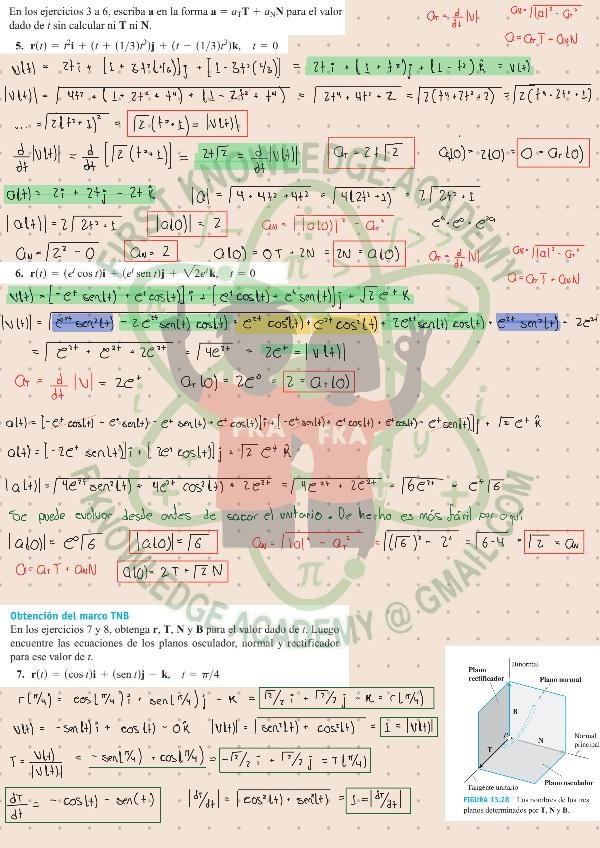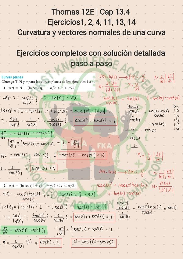 Ejercicios resueltos con procedimiento detallado paso por paso con anotaciones extra del libro Thomas Cálculo de Varias Variables, decimosegunda edición. Cap 13.4: Curvatura y vectores normales de una curva