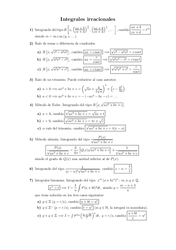 He publicado nuevos apuntes de 1º Cálculo y Análisis Diferencial: CambiosVariableIrracionales.pdf