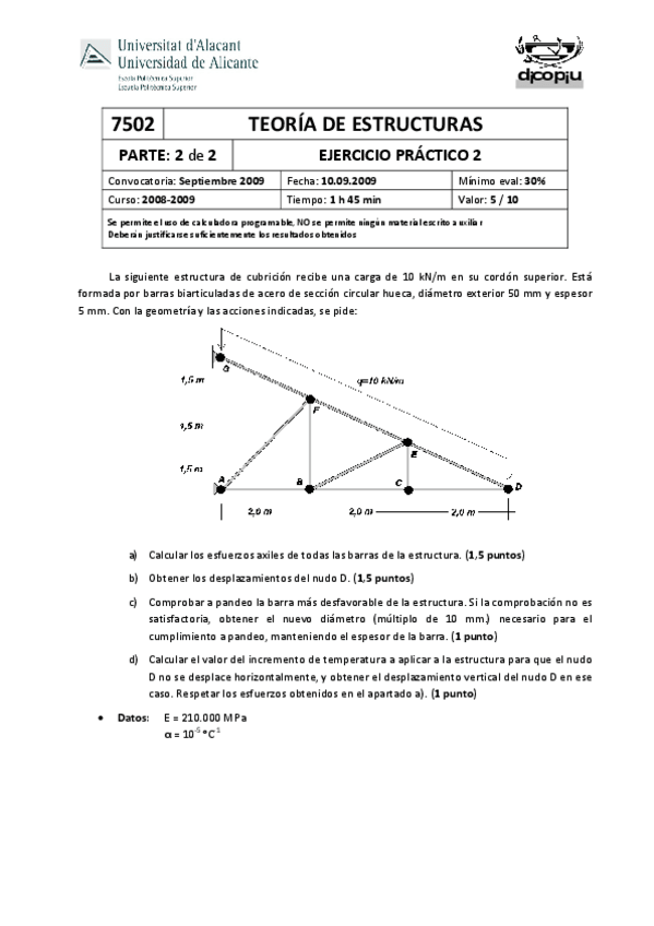 He publicado nuevos ejercicios de 4º Cálculo y Diseño de Estructuras y Construcciones Industriales: Ejercicios-PTV.pdf