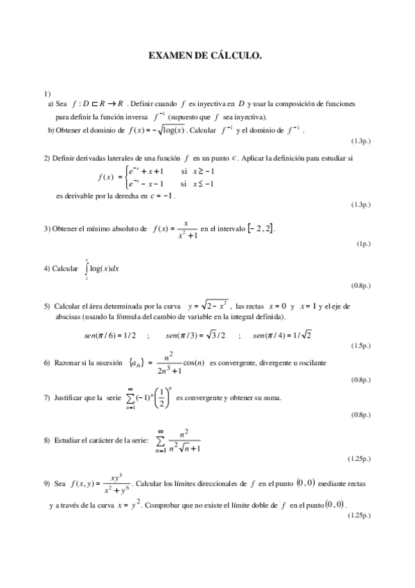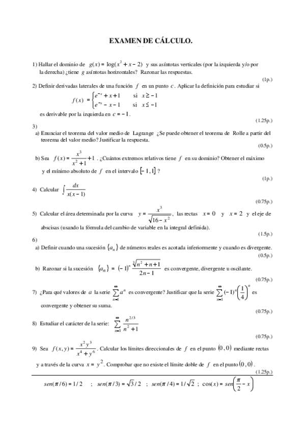 Exámenes de cálculo sin resolver