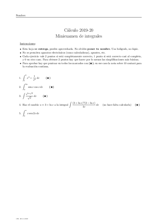He publicado nuevos examenes de 1º Cálculo: modelominiexamenesintegrales.pdf