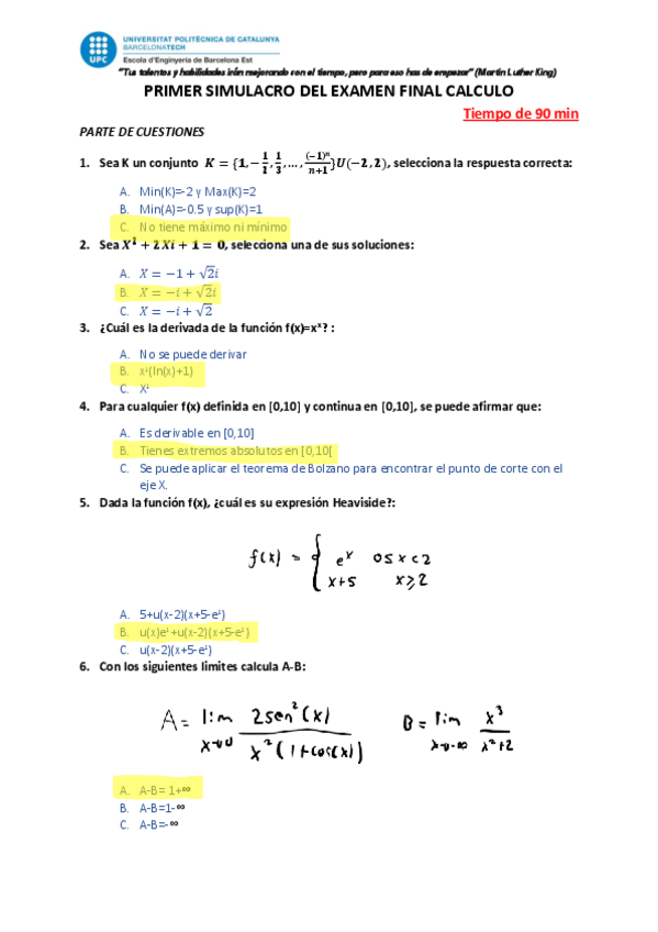 He publicado nuevos examenes de 1º Cálculo: TestSolucionsSimulacreExamenFinalCalculAulaLliure.pdf