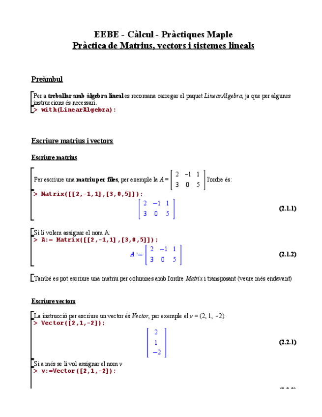 Resum de la teoria del primer examen de Maple (Sistemes i Matrius) amb els procediments per resoldre diversos exercicis.
