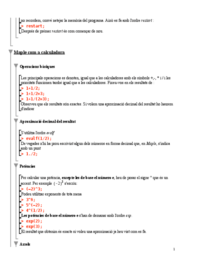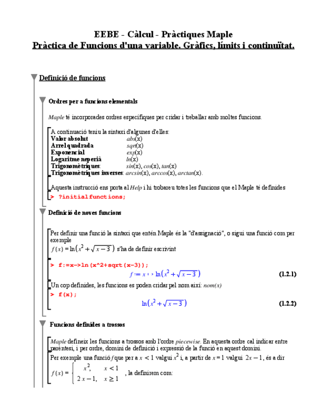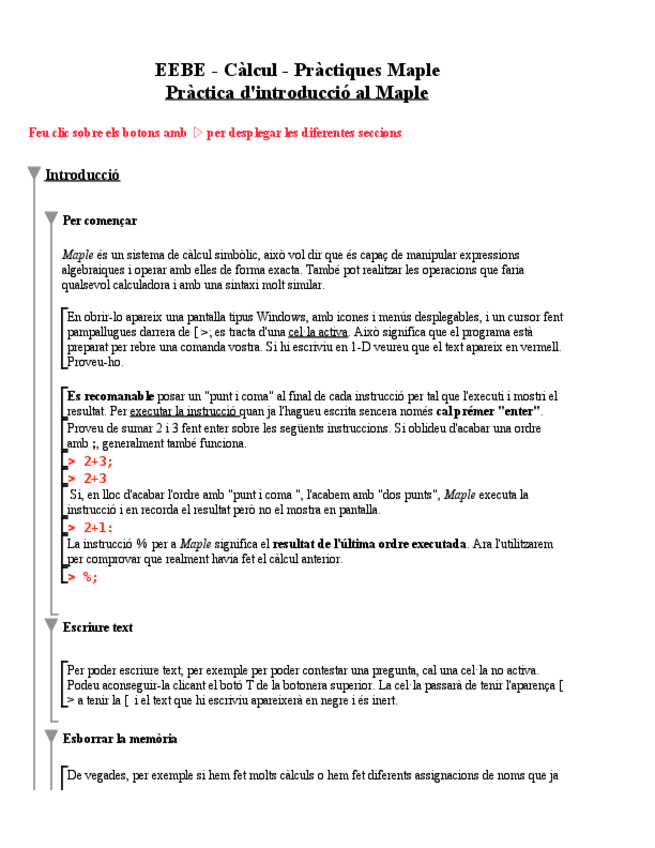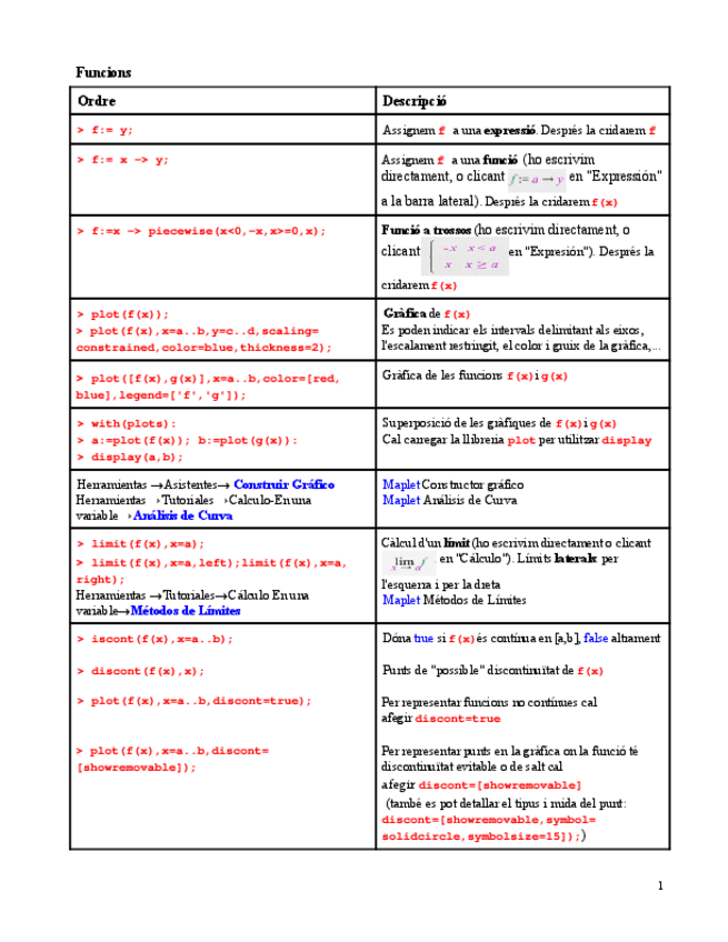 He publicado nuevos practicas de 1º Cálculo: Resum-instruccions-Maple.pdf