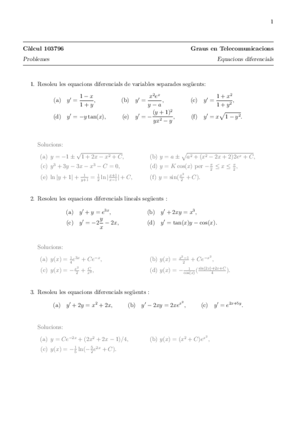 He publicado nuevos apuntes de 1º Cálculo: Problemes amb Eq. diferencials i Solu