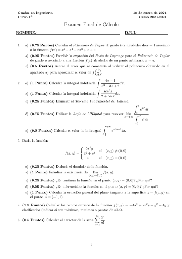 Cálculo, PL, ContenidoExamenes