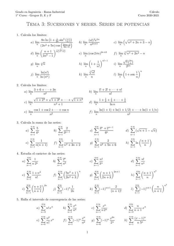 He publicado nuevos examenes de 1º Cálculo: examenes