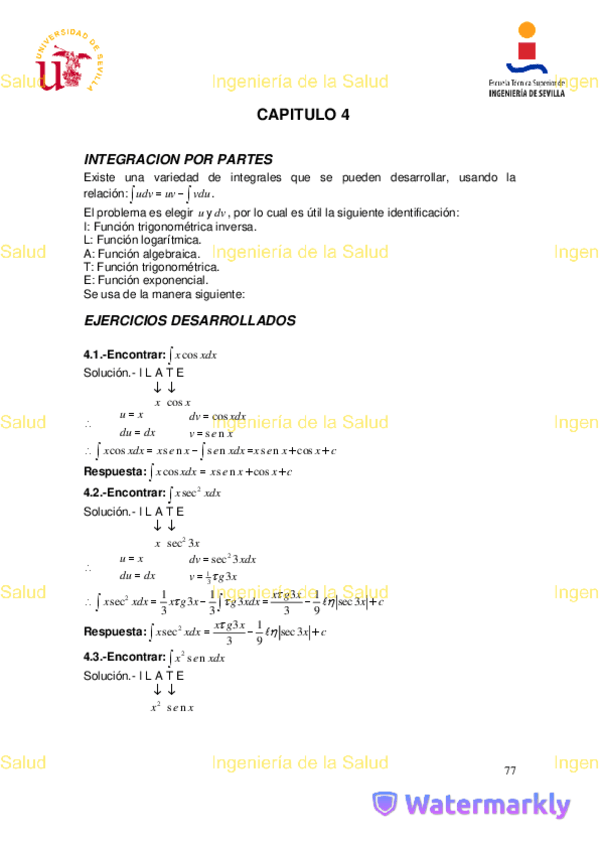 Relaciones de Integrales resueltas