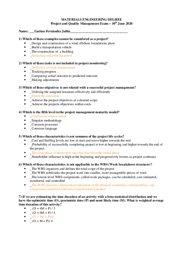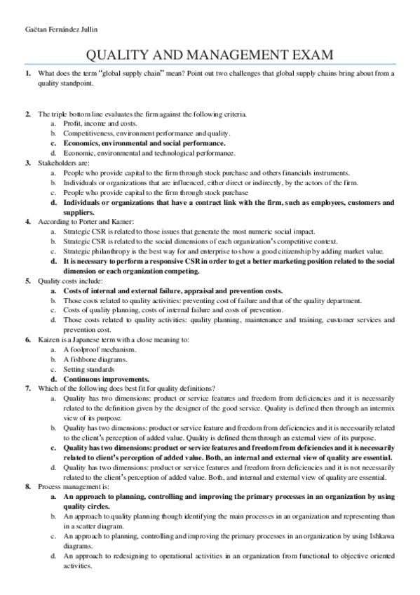 Quality COMPLETO Ejercicios y examen
