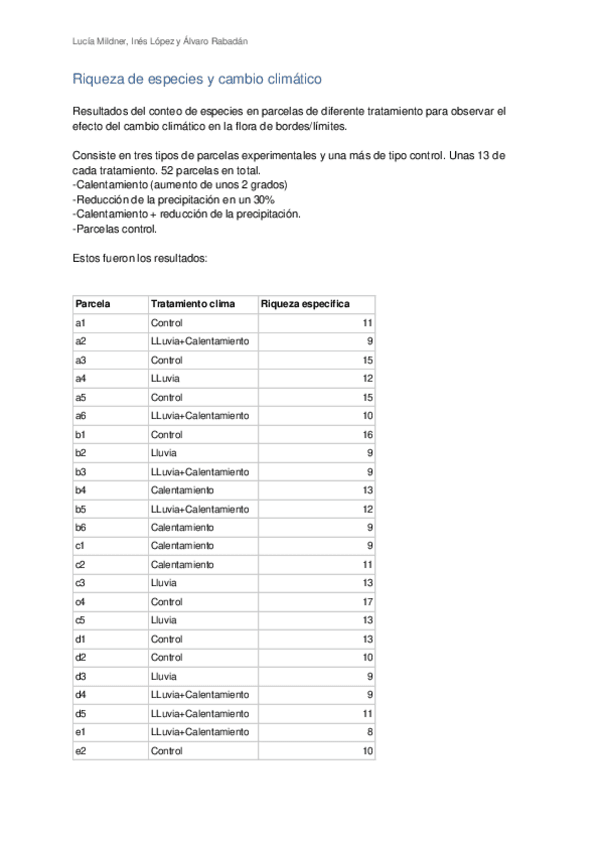 Práctica de las parcelas de la UPO (Lluvia, calentmiento, control, ...)