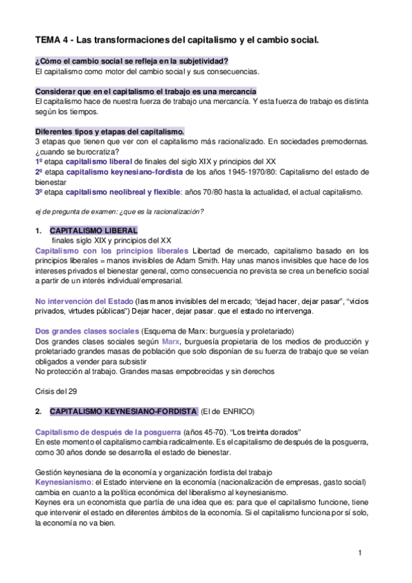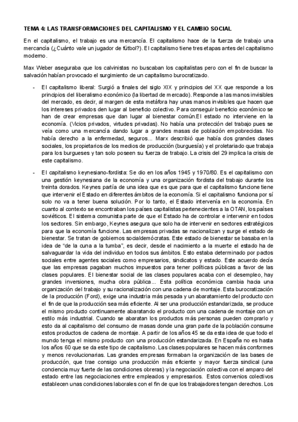 CAMBIO SOCIAL tema 4: Las transformaciones del capitalismo y el cambio social