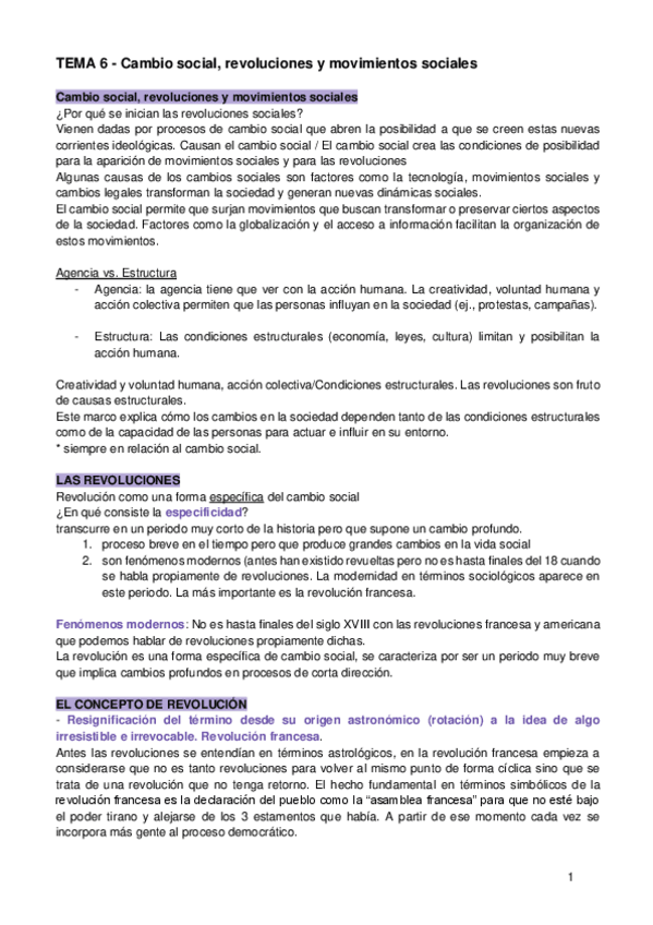 CAMBIO SOCIAL tema 6: cambio social, revoluciones y movimientos sociales