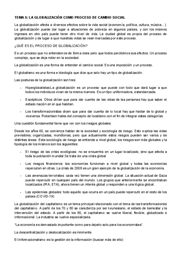 tema 5: La globalización como proceso de cambio social