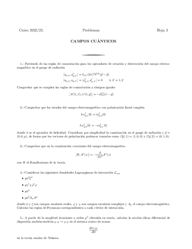 He publicado nuevos ejercicios de 4º Campos Cuánticos: Problemas resueltos A. Maroto 2022-2023