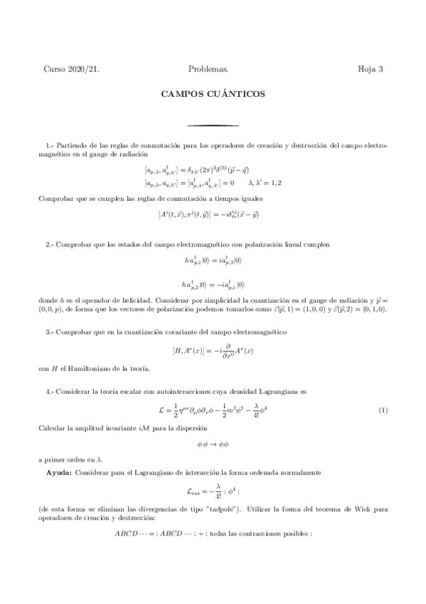 He publicado nuevos ejercicios de 4º Campos Cuánticos: problemillas