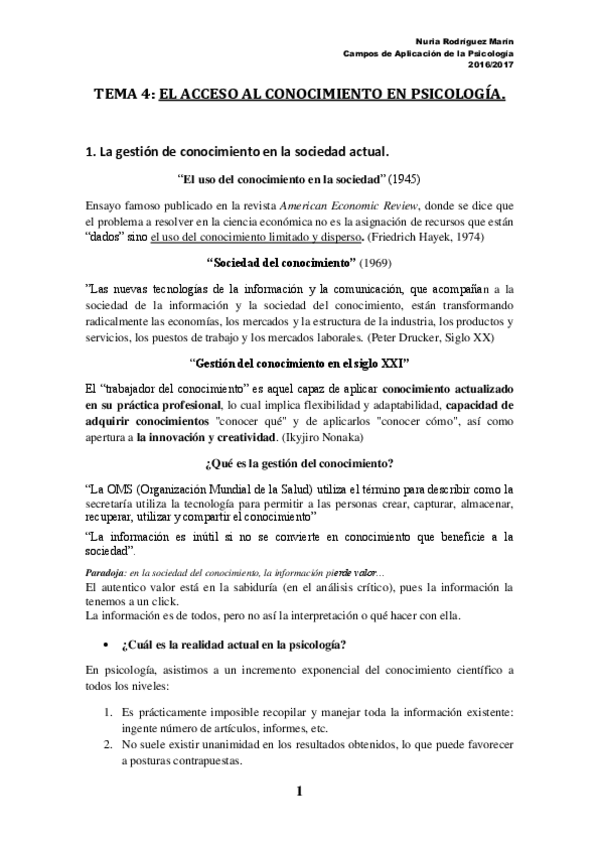 He publicado nuevos apuntes de 1º Campos de Aplicación de la Psicología: TEMA 4 ACCESO AL CONOCIMIENTO EN PSICOLOGÍA __.pdf