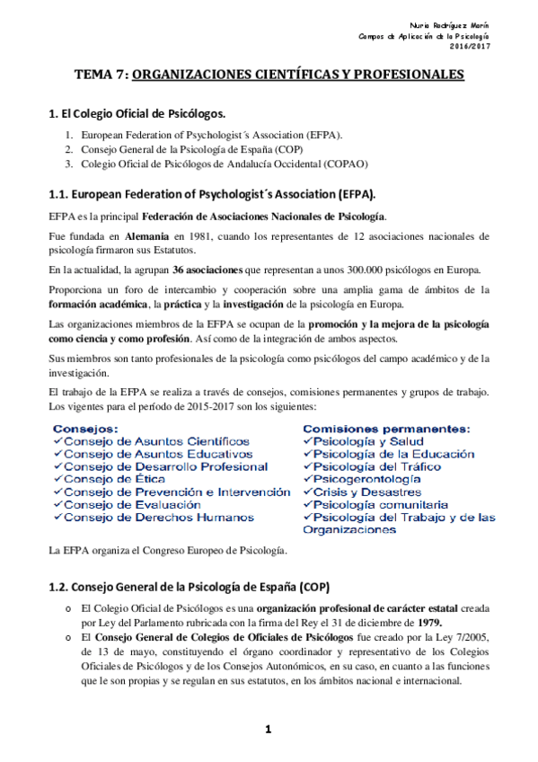 He publicado nuevos apuntes de 1º Campos de Aplicación de la Psicología: TEMA 7 ORGANIZACIONES CIENTÍFICAS Y PROFESIONALES__.pdf