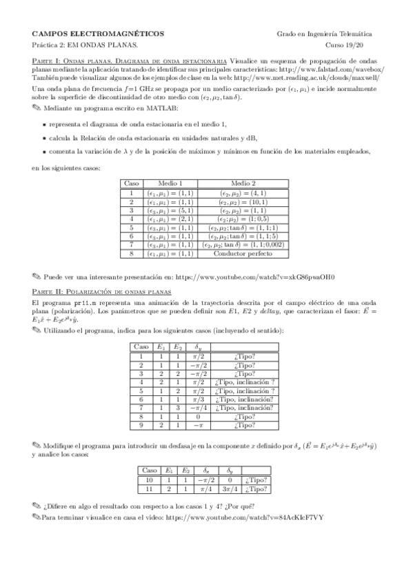 He publicado nuevos practicas de 2º Campos Electromágneticos: Prácticas