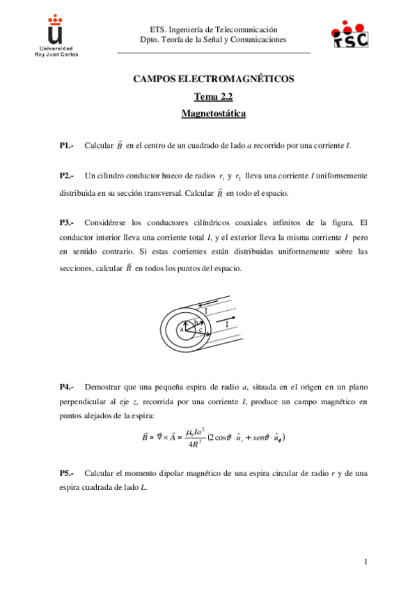 He publicado nuevos ejercicios de 2º Campos Electromágneticos: Problemas-claseTema4MTB.pdf