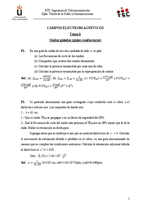 He publicado nuevos ejercicios de 2º Campos Electromágneticos: Ejercicios-guias-rectangulares.pdf