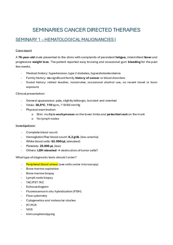 He publicado nuevos apuntes de 4º Cancer Directed Therapies: Seminary-Hematological-malignancies.pdf