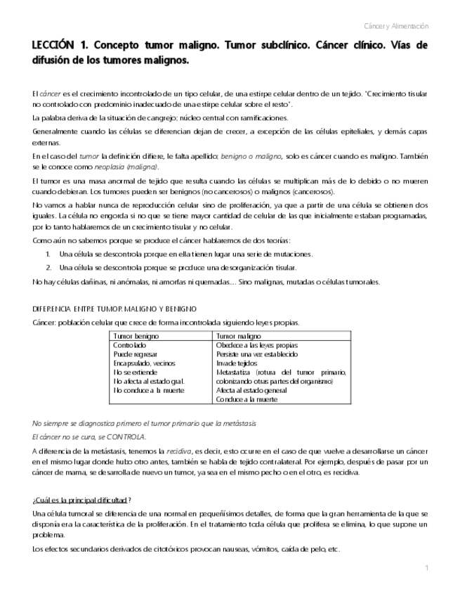 Apuntes Cáncer y Alimentación